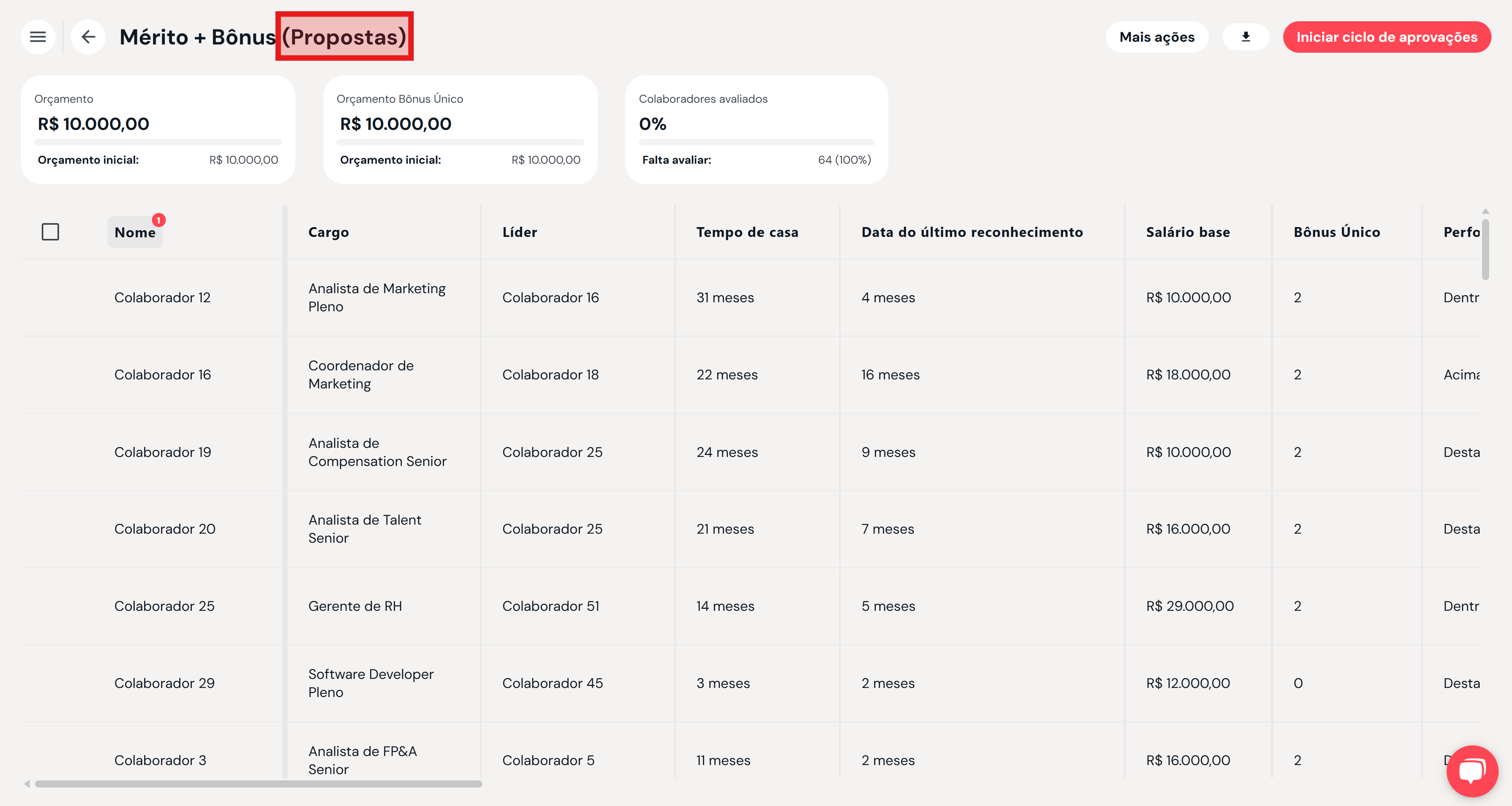 No ciclo de reconhecimento, cada participante recebe um orçamento para distribuir reconhecimentos.